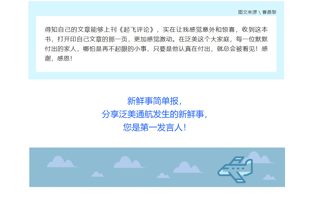 泛美通新鮮事(新鮮事簡單報, 分享泛美通航發(fā)生的新鮮事, 您是第一發(fā)言人!)
